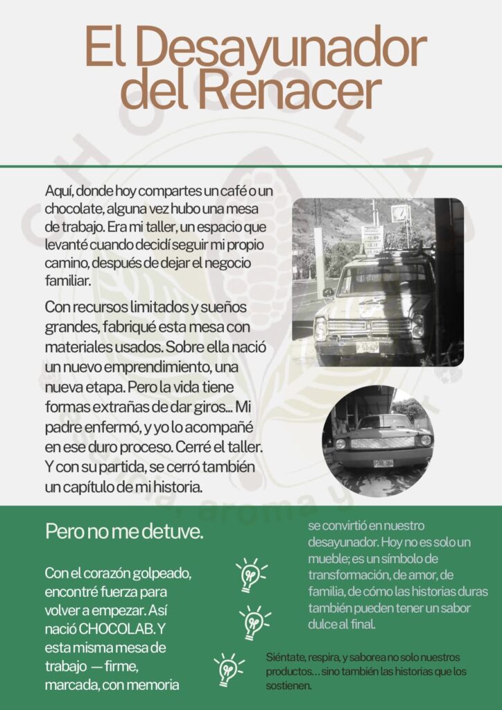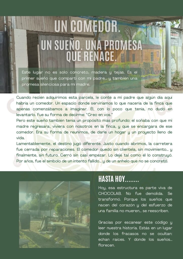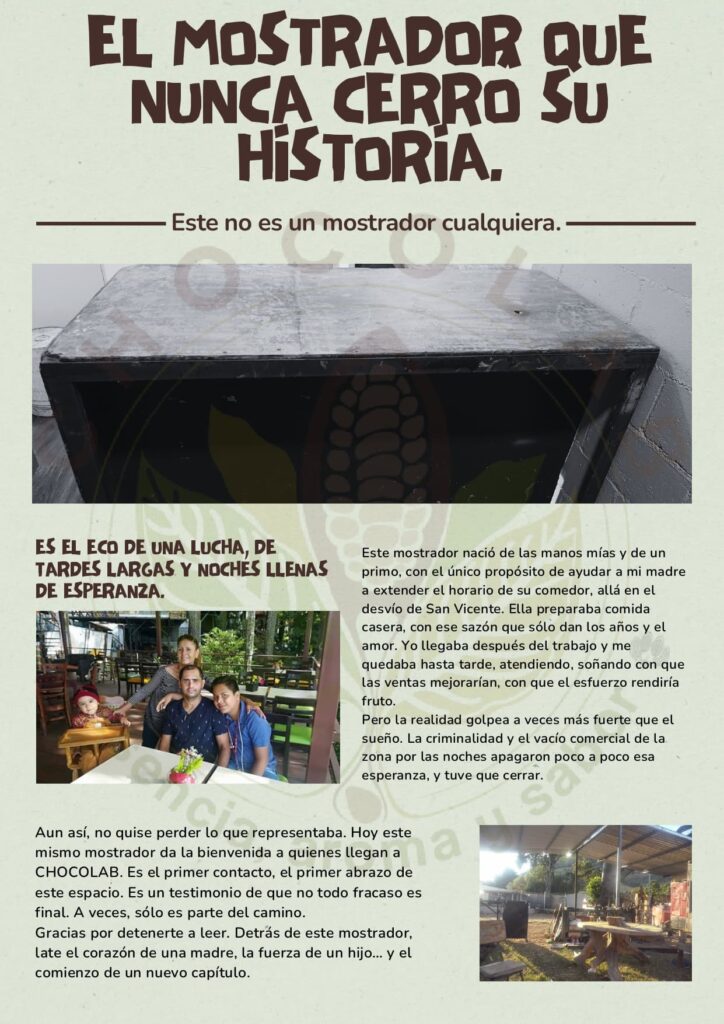 No me considero solo un chocolatero ni un técnico; mi trabajo es construir soluciones desde la finca, desde la fermentación, desde el diseño de productos hasta la comercialización directa. CHOCOLAB no es un accidente, es el resultado de más de cinco años sembrando conocimiento, corrigiendo procesos, y soñando con un espacio que conecte a las personas con el origen, la historia y la calidad real de lo que consumen.