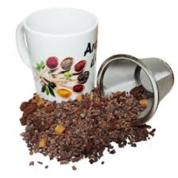 Infusión herbal que alivia y refresca con cacao y eucalipto.